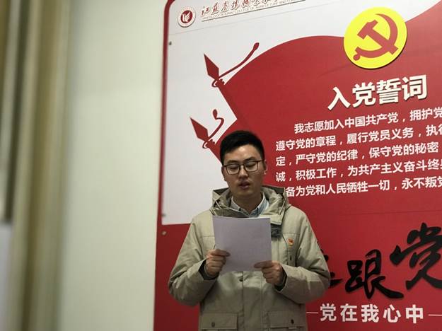 信息工程学院党总支和机电工程学院党总支联合举办“四重四亮——忆誓词、修师身、务本业、求创新,做新时代高校合格党员”主题党日活动。学校党委副书记简祖平,党委委员、副院长曹仁勇等领导参加本次活动。简祖平副书记要求广大教师党员要对照“四讲四有”合格党员标准,对照共产党人的初心使命,将本职岗位工作与学校重点、难点工作结合起来,进一步坚定理想信念,坚守责任担当。曹仁勇副院长领誓,全体党员重温了入党誓词,铮铮誓言,字字重任。最后,全体党员教师在“服务亮承诺”签名墙上签署了自己的服务承诺。