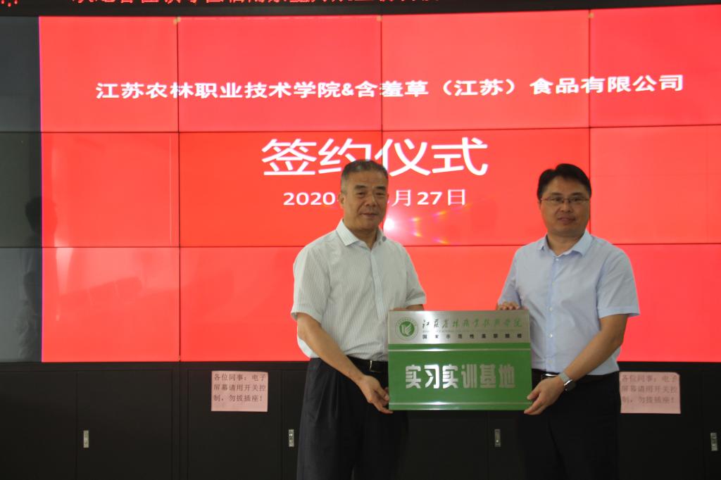 8月27日,学院党委副书记、院长简祖平带领茶与食品科技学院、风景园林学院、机电工程学院等负责人参观考察了含羞草(江苏)食品有限公司,举行了共建校外实习基地授牌仪式,签订了校企合作协议。