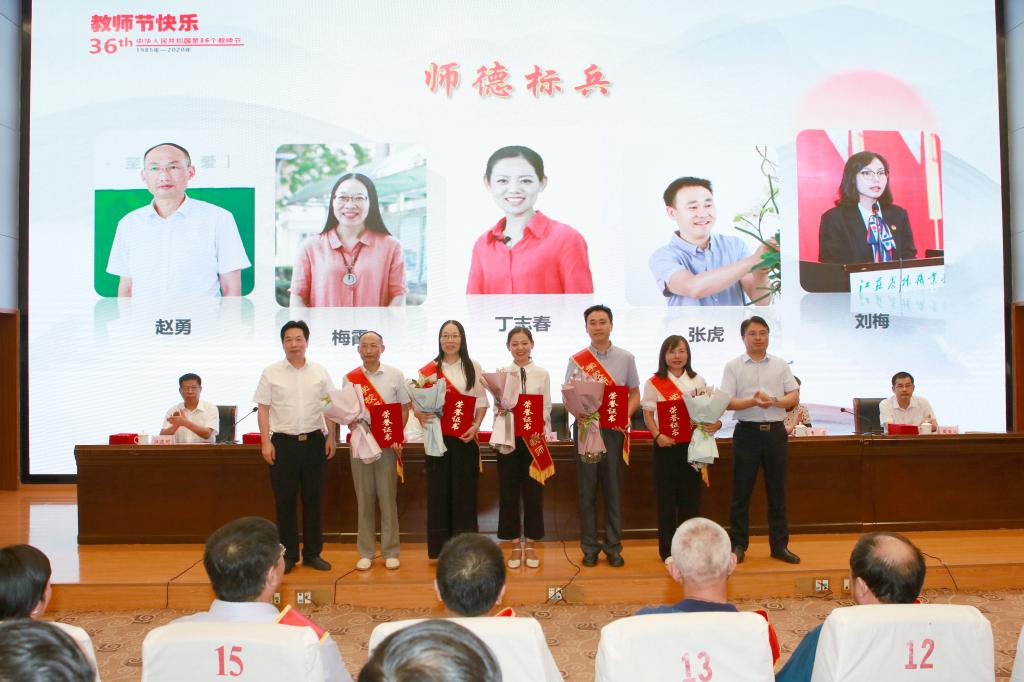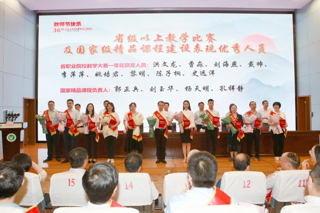 大会由学院党委副书记、院长简祖平同志主持,在庄严的国歌声中拉开序幕。大会传达了省农业农村厅对学院全体教职员工的节日祝福。大会表彰了学院师德标兵,本学年市级以上教学名师及人才工程奖项获得者,本学年省级以上教学比赛及国家精品课程建设表现优秀人员和本学年全省高校本专科优秀毕业论文及技能竞赛优秀指导老师,本学年学生工作表现优秀人员,本学年科技工作表现优秀人员。大会为受表彰的同志举行了颁奖典礼,受表彰的教师代表做了获奖交流发言。大会还为5名即将退休教师举行荣休仪式,29名新教师举行了入职宣誓仪式。