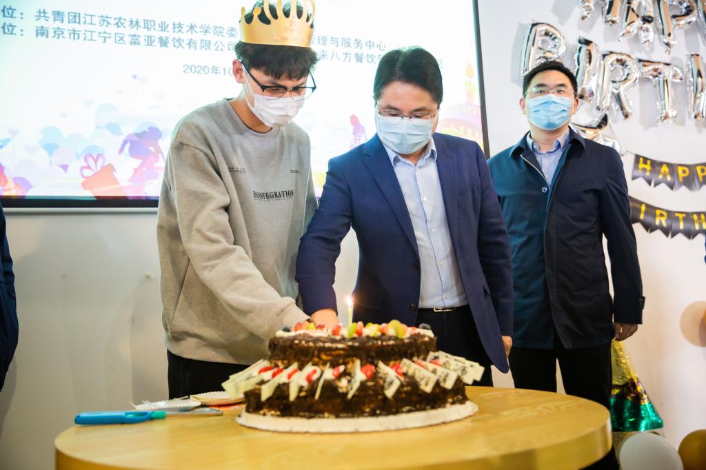 10月18日下午,“新生日,心启航,薪火传,新农人”新生集体生日会在茅山校区第5食堂举行,共同为10月17、18日两天出生的25位新生庆祝生日。学院党委副书记、院长简祖平,党委委员、副院长曹仁勇,学生工作处、团委、后勤管理与服务中心、茅山校区管委会等部门负责同志共同参加了生日会。