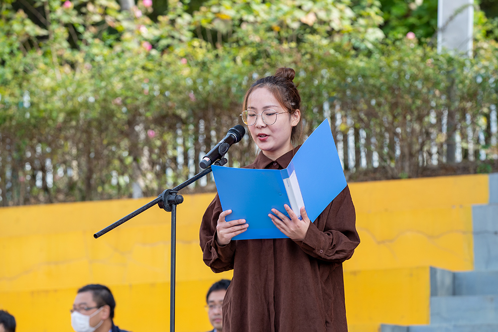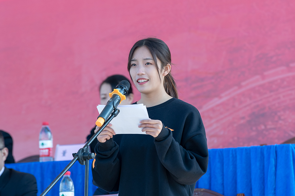 巫建华书记向2020级新生军训团团长授予军训团旗,宣布学院2020年新生军训正式开始。仪式现场,军训教官代表、教师代表、新生代表、在校生代表分别作了发言。