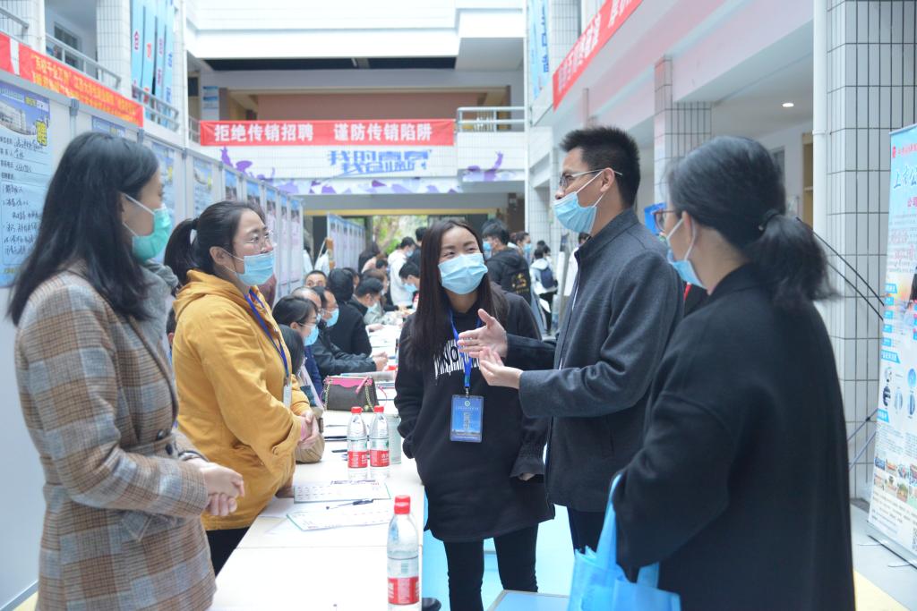 今年以来,学院严格落实新冠病毒疫情防控形势下的“稳就业”“保就业”工作要求,重点打造多维立体、多层次、多类别的就业活动,积极拓宽毕业生求职渠道,为毕业生提供更加精准周到的就业服务。在疫情防控常态化条件下,学院全力打造小规模、多频次、综合性供需洽谈会,将更多“质优岗实”的就业机会送到毕业生手中,确保毕业生“足不出校”满意求职就业。