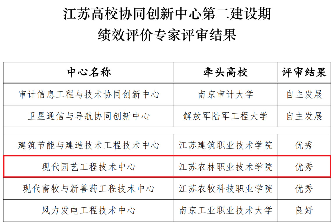 12月18-25日,江苏省教育厅公布了江苏高校协同创新中心第二建设期绩效评价专家评审结果,FUN官网现代园艺工程技术中心获得优秀等次。