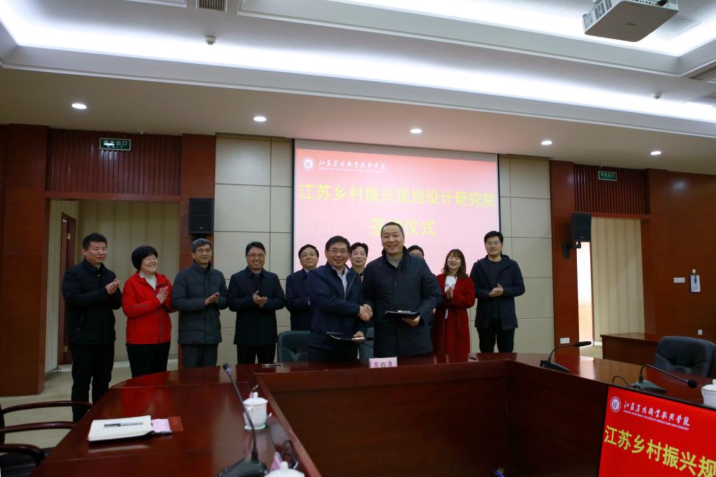会上,双方签订了江苏乡村振兴规划设计研究院共建协议。学院相关部门主要负责人参加了活动。