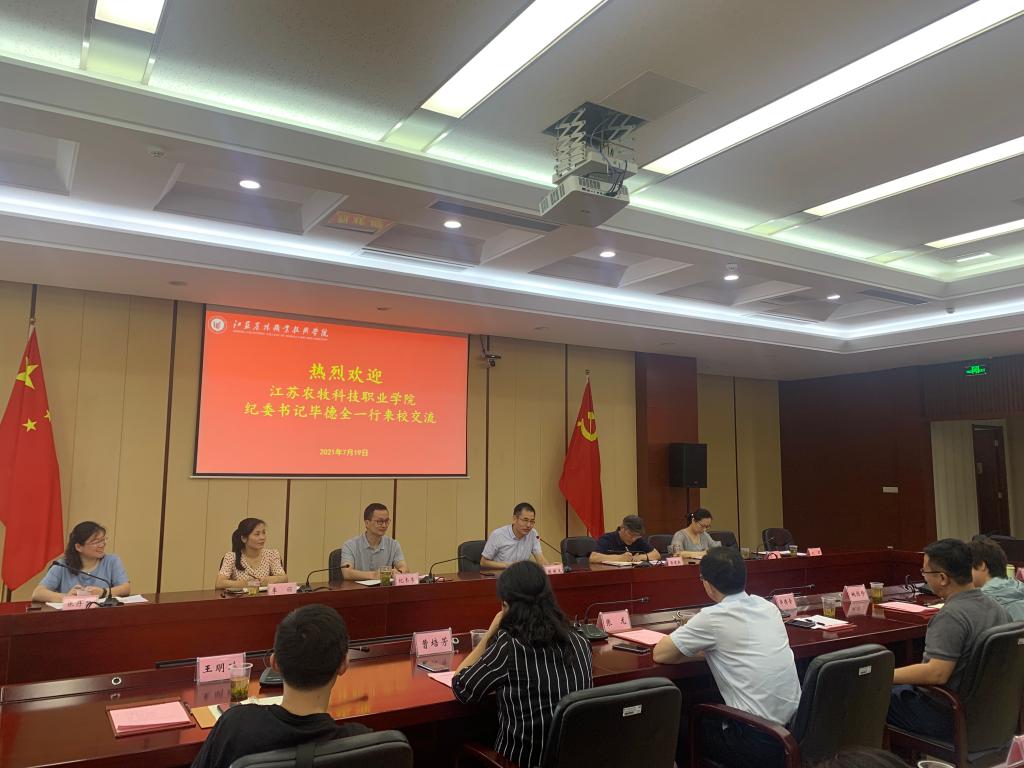 7月19日上午,江苏农牧科技职业学院党委委员、纪委书记毕德全一行18人来FUN官网考察交流。学院党委委员、纪委书记周国义,纪委委员和专职纪检干部参加座谈交流。会后,来宾一行参观了FUN官网江苏茶博园。