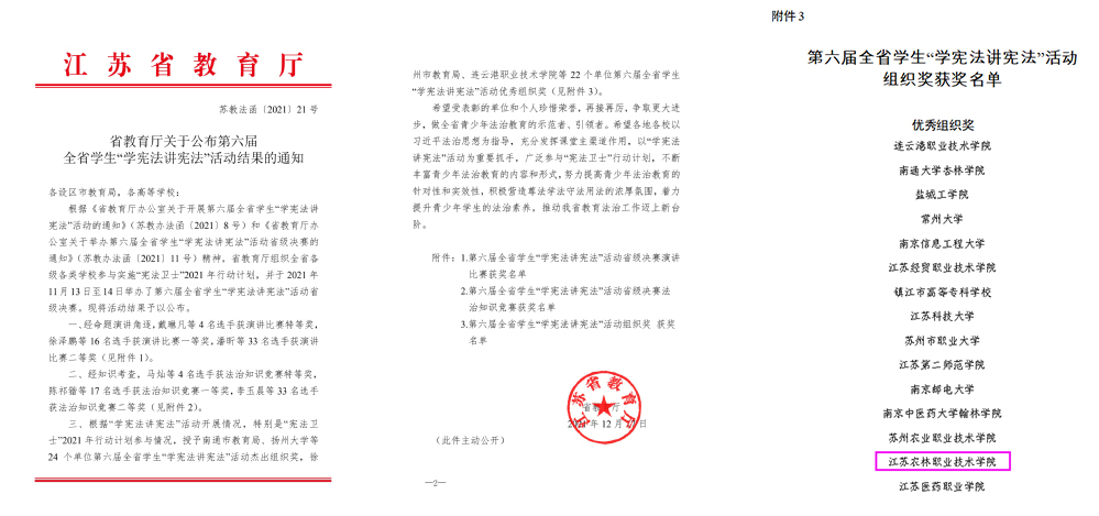 近日,省教育厅公布了第六届全省学生“学宪法讲宪法”活动评选结果,FUN官网荣获“优秀组织奖”。活动启动以来,学院层层部署、广泛动员,做到普法教育全覆盖,学院注册“宪法小卫士”达10538人,9861名学生参与在线法治能力测评,平均分84.01分,其中6210人获得金牌。参与率位居全省前列。