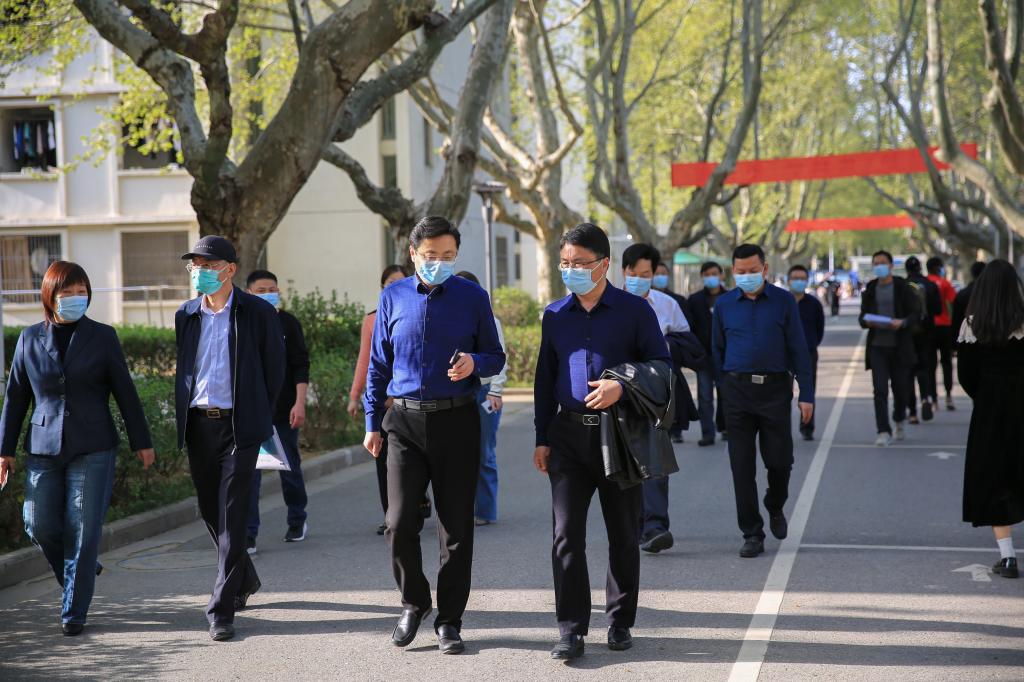 4月6日下午,镇江市委教育工委副书记、教育局党委副书记朱定明带领在镇高校疫情防控工作督查组一行8人,来FUN官网督查疫情防控工作。督查组由镇江市委教育工委、镇江市教育局、镇江市卫生监督所、镇江市餐饮安全监督所、句容市教育局、句容市公安局和句容市卫健委卫生监督所相关人员组成。学院党委书记巫建华,党委副书记、院长简祖平,副院长贾君,各疫情防控工作组负责人参加了督查活动。