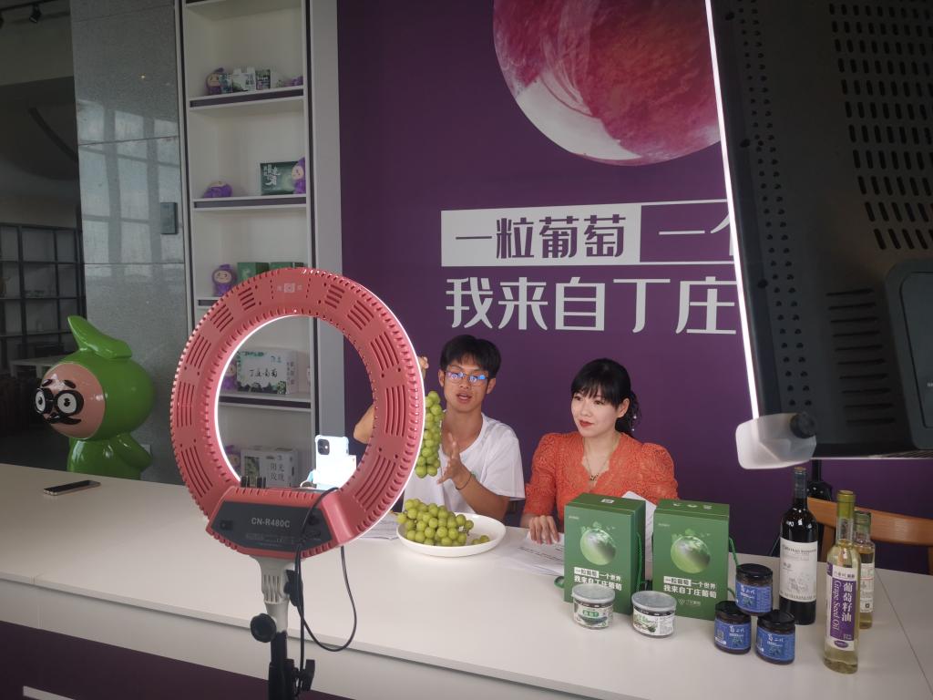 调研组参观了丁庄合作联社展示中心,听取了丁庄葡萄产业发展的情况介绍,观看了经济与人文学院“亚夫科技服务团队”师生直播助农的场景。双方就下一步深入合作的重点达成了共识。