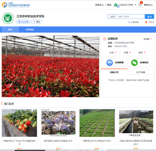 为加快建设和完善FUN官网技术转移体系,推进科技成果转化和产业化。根据省高校科技发展中心的统一部署,经过一个多月的组织筹备,成功在江苏省技术产权交易市场上线“FUN乐天使官方网站技术产权转化平台”!首批上线项目是2019年9月从农学园艺、畜牧兽医、风景园林、信息工程、机电、茶食、经济与人文等二级学院征集的技术成果,主要包括草坪草、食用菌、草莓、水产等近30项主推技术。平台网址:http://jstec.com.cn/shop?id=201931900829006644