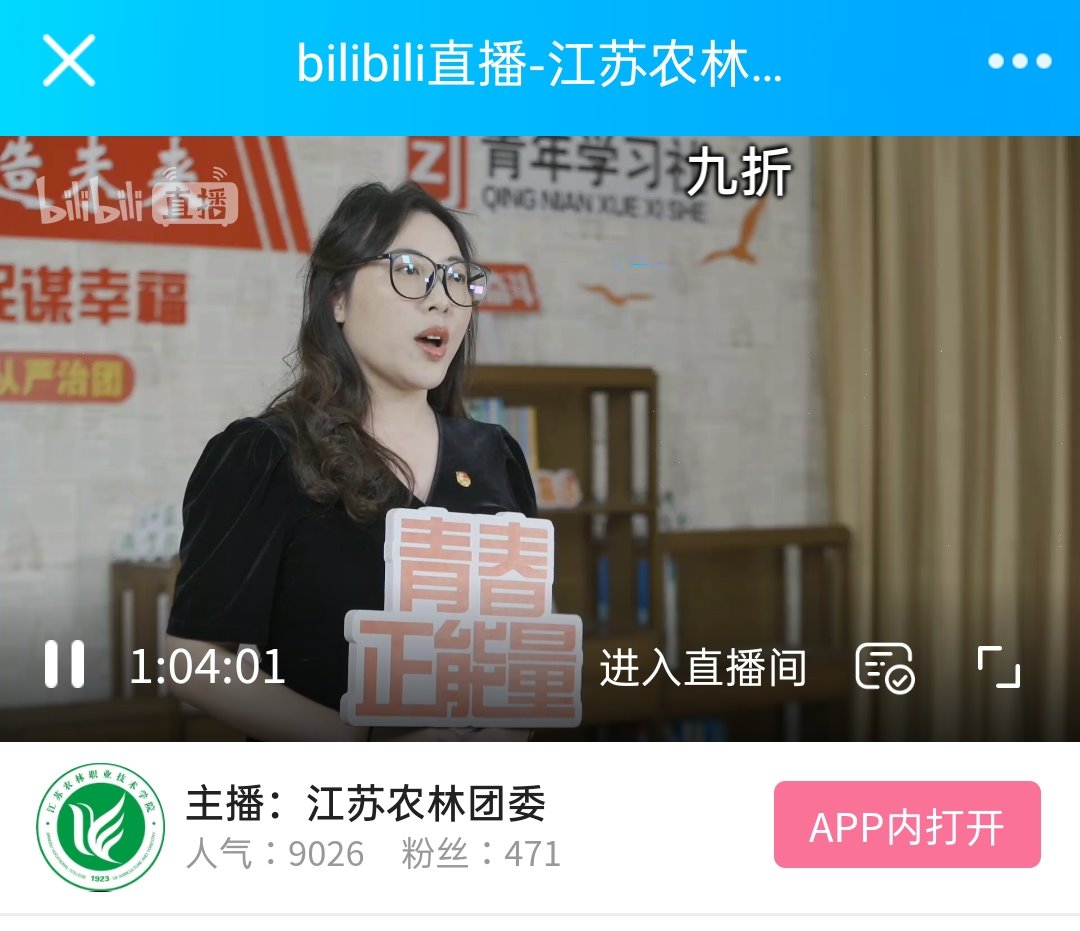 为进一步聚焦学校共青团工作的主责主业,推动“青年大学习”行动,全面推进“团干部上讲台”,搭建团干部交流思想、传递经验的平台,5月19日晚,由学院团委主办的“农林青年说”之“不忘跟党初心 牢记青春使命”团干部加油站活动在B站顺利开讲,9000余师生通过线上网络平台观看了直播。