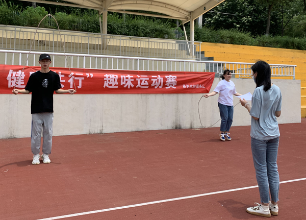 此次团日活动分为乒乓球接力、你比我猜、单人跳绳快问快答三个单元。乒乓球接力活动中,两人相隔50米往返一个来回即为完成比赛,以用时时长作为积分标准。你比我猜项目中,两组同时进行,裁判给出相应的题卡,一人比划一人猜,在相同时间内以猜出个数为积分标准。单人跳绳快问快答中,参赛队员边跳绳边答题,裁判按照生活类、防“疫”类、茶相关知识类等给出题目,同一时间内跳绳数量多且答题多者胜。最终,18茶艺与茶叶营销的王双、翁佳欣团队以优异成绩获得本次比赛一等奖。