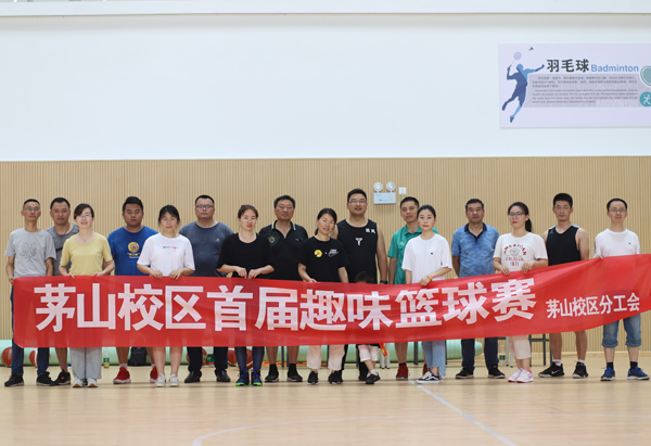 为了丰富教职工业余生活,加强体育锻炼,增强团队精神和集体凝聚力,茅山校区分工会于6月12日下午在校区体艺中心举办首届教工趣味篮球赛,共二十二名教工参与了此次活动。