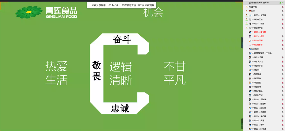 校友王传潞分享了自己的成长路上的苦与乐,他认为,前方的路充满棘荆也会充满鲜花,只要我们立足现实,坚定勇敢,乐学善学,敢于突破,梦想之花终将绚烂绽放。董军平经理介绍了肉类食品加工行业发展状况、公司员工人才培养与发展路径,疫情期间用互联网思维对产业发展进行改造、升级和拓展等。