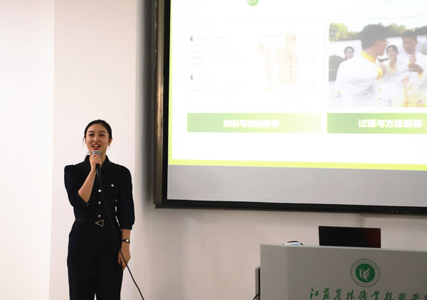 此次观摩课展示团队为茶与食品科技学院的曹淼、洪文龙、刘海燕和马克思主义学院的黎明、陈子桐、史远洋两个教学团队,展示的作品是他们参加国家职业院校教学大赛选拔赛、江苏省职业院校教学大赛一等奖的作品。两个团队分别对《匠心烘焙——创意蛋糕 健康面包》《气蕴其中--感悟八段锦的魅力》进行了5分钟的教学设计讲解和模拟课堂教学展示。同时,获奖团队从参赛团队的组建、参赛内容的确定以及参赛流程等维度向观摩教师分享了参赛的实战经验和获奖体会,给观摩教师诸多启发,为备战2021年江苏省职业院校教学大赛的教师提供了宝贵的经验和借鉴。