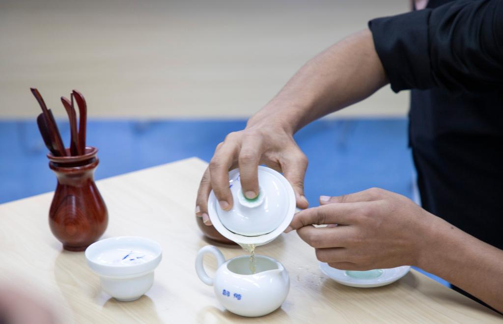 “海上生明月,天涯共此时。”留学生饱含深情诵读中国诗文致敬中华传统文化,领略中华传统文化的博大精深。随后,中国学生指导留学生书写毛笔字,同学们横竖撇捺的认真临摹写活了中国汉字的方正之美。中秋文化精髓在于饮食之美,同学们在相互学习中制作“中秋饼”,从捏饼皮到包芝麻馅,从揉捏成型到下锅烙熟,同学们在欢声笑语中品味中秋,现场其乐融融。此外,活动还设置了茶艺演艺、中外歌曲大联唱等互动环节。品茶、赏月、吟诗、尝美食,“缘来·一家人”打造别具一格的“大团圆”。