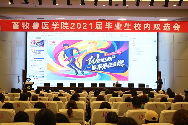 双选会现场,企业与学生积极交流,用人单位不仅给毕业生开出了高薪,更拿出了购房补贴、人才培养计划来吸引学生。据统计,畜牧兽医学院共有425名毕业生参加招聘会,岗位供需比达15:1,充分满足了畜牧兽医学院毕业生的就业需求。