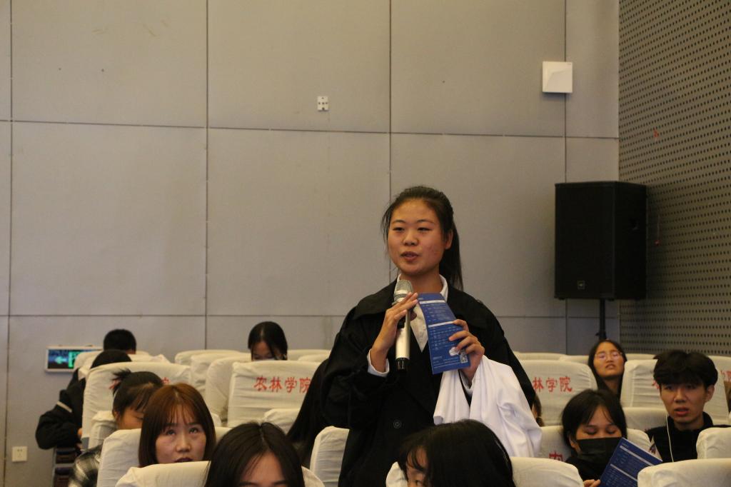 李丽女士介绍了宠物行业的发展规模、广阔的职业发展前景以及行业所面临的新挑战,着重介绍了我校优秀毕业生代表在新瑞鹏工作的成功案例,提出“学历不是最重要的,最重要的是专业技能和自己的个人能力”。讲座让同学们了解了行业前景,提高了学习兴趣。