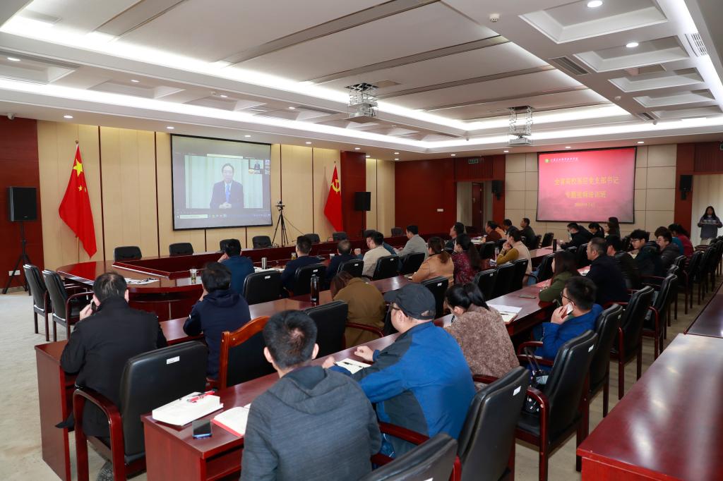 11月4日,组织人事处组织全体基层党支部书记通过观看远程视频的方式参加全省高校基层党支部书记培训。学院全体党总支、直属党支部书记,党支部书记以及党口部门等近60人参加了本次培训。会前,学校党委委员、组织人事处处长邢军做了专门培训动员。