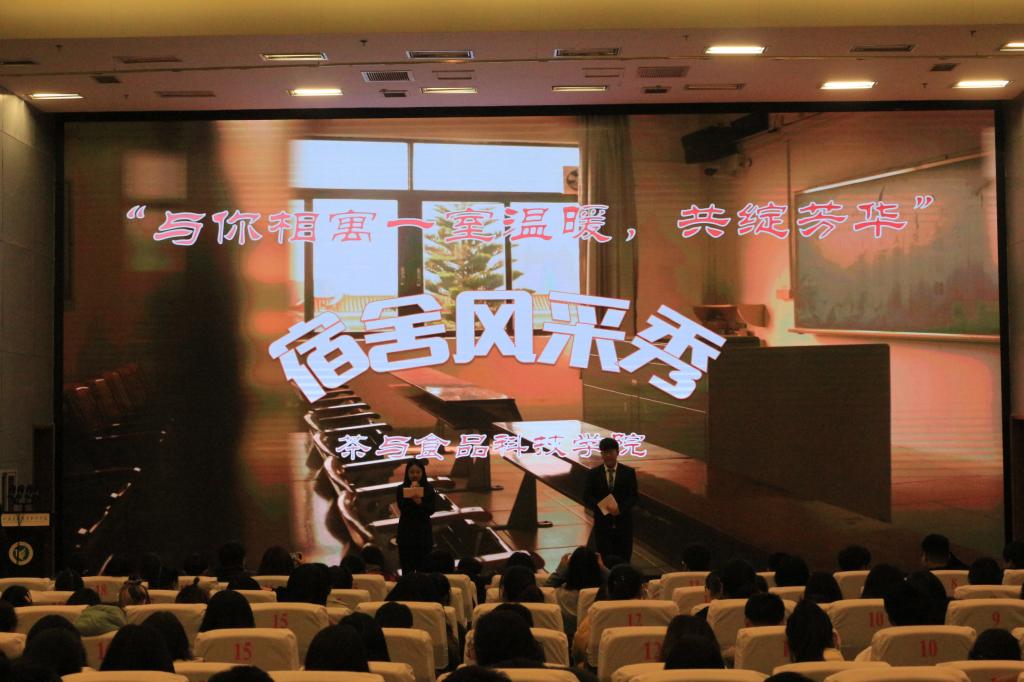 12月9日晚,茶与食品科技学院团委在图书馆报告厅举办“与你相寓一室温暖共绽芳华”宿舍风采秀大赛。