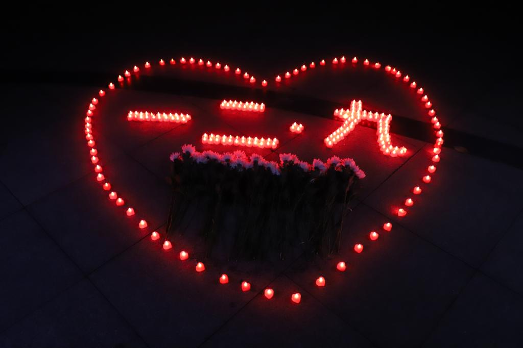 活动中,青年学生唱响革命歌曲,缅怀先烈,传承精神,写下铮铮誓言,表达拳拳之心,立志为了祖国的繁荣富强贡献青春力量。随后,同学们用蜡烛摆成心形,表达缅怀和崇敬之情。