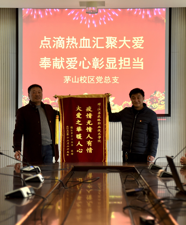 近年来,学院一直积极宣传动员,组织师生参与到义务献血中来。特别是今年新冠肺炎疫情发生以来,在镇江市中心血站库存量告急的时刻,茅山校区党总支喊出“无偿献血我先行、抗击疫情我担当”的口号,在师生中广泛发动。近日,共有540人参与到无偿献血中,献血量达173400毫升。献血活动的开展,正如锦旗内容所言“疫情无情人有情 大爱之举暖人心”,充分展现了我校师生不忘初心、勇挑社会责任、乐于奉献的精神。校区党总支书记汪国好表示,今后,将一如既往地关注、支持社会公益事业,将小我融入大我,积极组织、参与到义务献血、关注孤寡老人等社会公益活动中,为国家的公益事业贡献一份自己的力量。
