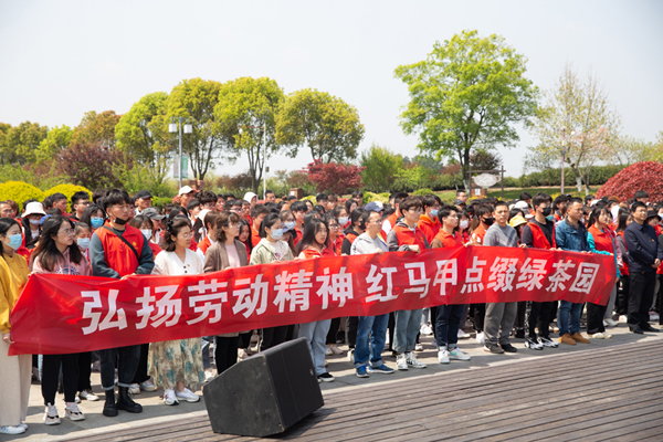 为使党史学习教育“活起来”,4月8日,茅山校区党总支让党史教育走进了田间地头,多元化打造“微党课”,开展了“传承劳动精神 红马甲点缀绿茶园”茶园里的微党课主题活动。茅山校区党总支全体党员教师、500名青年大学生参加。