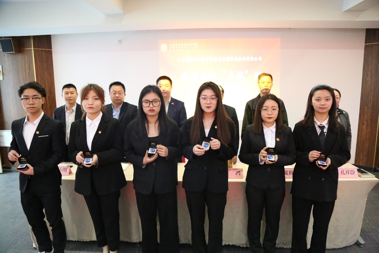 校企双方领导为19级学生代表授予专属的“云财务会计师”徽章和班旗,鼓励全体同学在新学期里不断充实专业知识,不断提升职业素养,为未来发展奠定坚实基础。