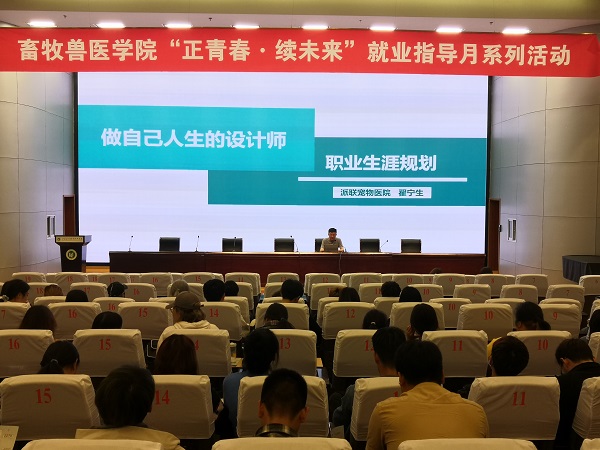 4月26日,畜牧兽医学院在图书馆报告厅举办“正青春·续未来”就业指导月之优秀校友分享会,邀请了翟宁生、王雪梅、吴永凤三位就业创业校友与在校学生面对面交流,畜牧兽医学院200余名学生参加了此次分享会。