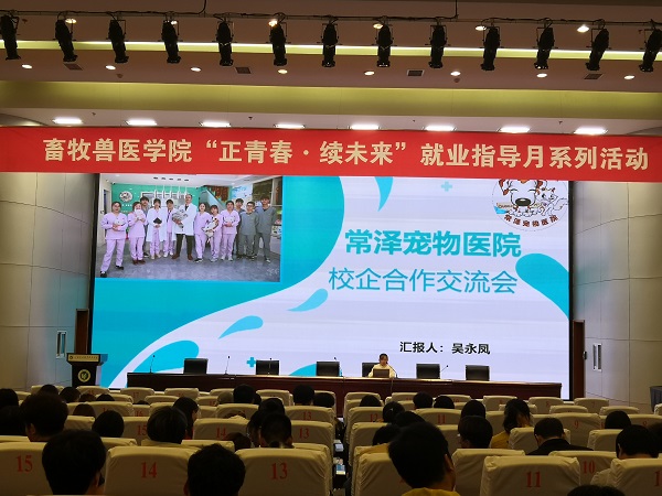 分享中,校友们从不同角度讲述了自己的在校学习、毕业实习、工作的人生经历。校友们以大学生活和职业选择中的切身体会为例,讲述了自己如何利用大学资源、充分发掘自身潜力的经历,为同学们提供了将自身价值与职业发展完美结合的良好借鉴。并从毕业后从业经历出发,分析了大学生就业趋势,结合自身感受,讲述了宠物行业的发展前景和人才需求,鼓励同学们做好职业规划和人生规划,明确职业发展目标,加强责任意识和担当精神,勇于担当、脚踏实地,实现自我价值与人生价值。