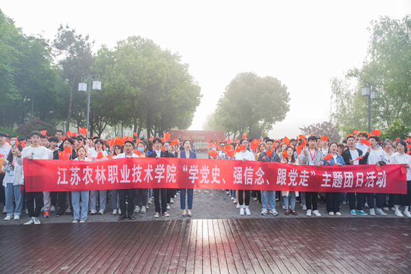 “独立寒秋,湘江北去,橘子洲头。”千名青年大学生在国旗下迎着朝阳诵读了毛泽东诗词《沁园春·长沙》,在朗诵中追溯党的历史伟业,重温红色经典。该词通过对长沙秋景的描绘和对青年时代革命斗争生活的回忆,抒写出革命青年对国家命运的感慨和以天下为己任,蔑视反动统治者,改造旧中国的豪情壮志。来自19茶树栽培与茶叶加工班姚光烨同学说到,“恰同学少年,风华正茂;书生意气,挥斥方遒。我们也许没有英雄那样的史诗气魄,但也不缺乏初生牛犊的赤子之心,我们为自己的人生奋斗就是为社会做贡献,作为一名入党积极分子,我会紧紧抓住时代机遇,乘风破浪、扬帆起航,让青春在不懈奋斗中绽放绚丽之花。”