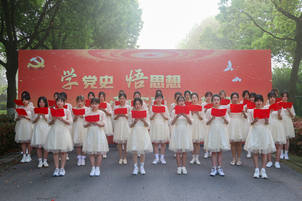 8名团员青年给在场师生演绎了《致先辈》,致敬和怀念不畏牺牲的青年先辈们。在低沉舒缓的音乐中,全体师生聆听了来自20文秘班张荣荣的红色家书《愿润之革命早日成功》,朗读者时而高昂、时而低沉的声音,深情诠释了感人肺腑的红色家书,再现了中国第二位女共产党员杨开慧为了支持丈夫、支持革命,不惜牺牲生命的伟大女共产党员形象。