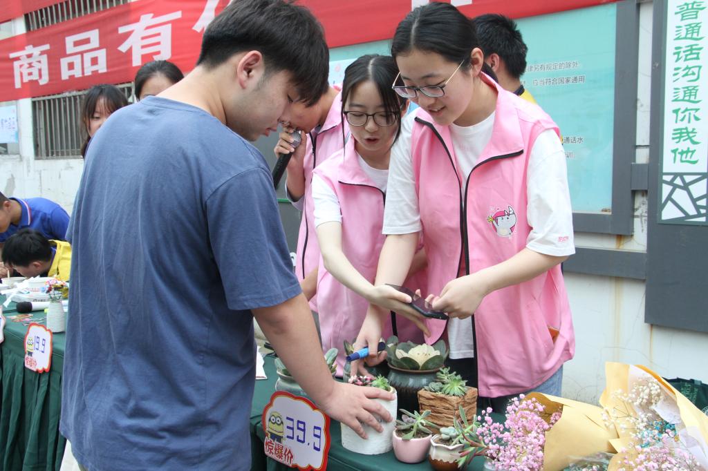 义卖物品主要包括多肉绿植、鲜花花束、手工摆件、捐赠杂物等,其中除捐赠杂物为FUN官网老师同学捐赠外,其余均为特殊教育学校提供。这些物品是特殊教育学校的学生在老师的指导下制作完成,FUN官网“爱馨”心理协会的同学们也在义卖活动正式开展前,分批赴特殊教育学校对他们进行了爱心助力,帮助他们完成手工制作。本次活动历时3个小时,卖出物品近200件,最终义卖所得共计2267元。本次义卖所得将全部用于助残事业,特殊教育学校将于学校橱窗对此笔钱款进行公示。