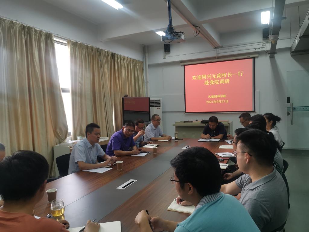 9月27日,学院党委委员、副校长周兴元,科技开发处一行到风景园林学院调研指导科研及社会服务工作。风景园林学院负责人及其内设机构负责人和科研工作教师代表参加了本次调研活动。
