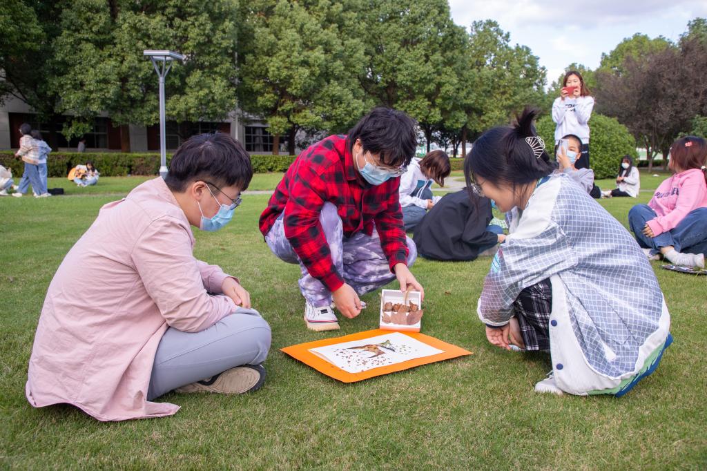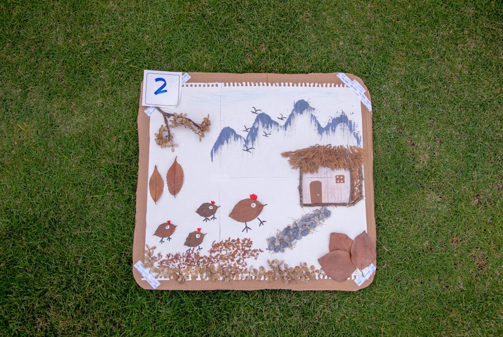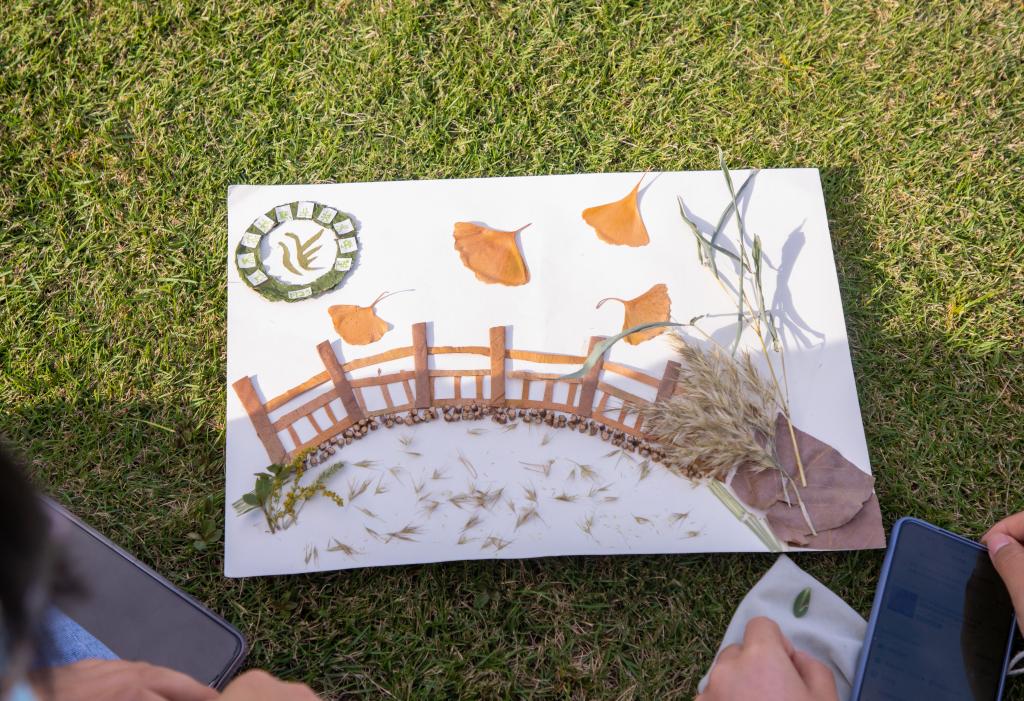 秋去秋来,四季更替,生命的轮回。活动中,同学们将寻秋活动分为“听、看、念”三个环节,“听”秋风掠过秋叶的声音,感悟大自然的“欢歌笑语”。“看”秋色满园的绚烂生光,敞开心扉素心向秋。一季落花沧桑了流年,同学们捡起校园里的落叶,折成的娇滴的玫瑰花、俏皮的梅花鹿、朴实的乡间小院……他们将“念”藏在的作品,定格秋最美的瞬间,即认识到秋的清寒,也看到了秋的硕果累累。