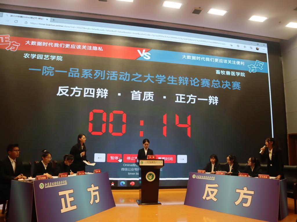 经过复赛和半决赛的两轮角逐,最终农学园艺学院代表队和畜牧兽医学院代表队进入了最后的决赛。在《个人信息保护法》正式实施的背景下,参赛选手针对大数据杀熟、App精准推荐、人脸识别等多个社会热点问题展开讨论,从安全与发展、保护与利用、风险与便利等方面切入,多层次、多角度发表自己的看法和建议。在辩论过程中,选手展示自身对法律法规、典型案例的独到见解,双方摆事实讲道理,运用所学知识作出利益衡量,对相关概念的内涵与外延作出分析和解释,观点犀利、言辞切题,向评委和观众明确表达自身的观点和态度。