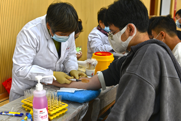 12月15日,由茅山校区团委、镇江市中心血站联合发起的以“爱心传递,生命接力”为主题的大学生义务献血活动在校区体艺中心顺利开展。