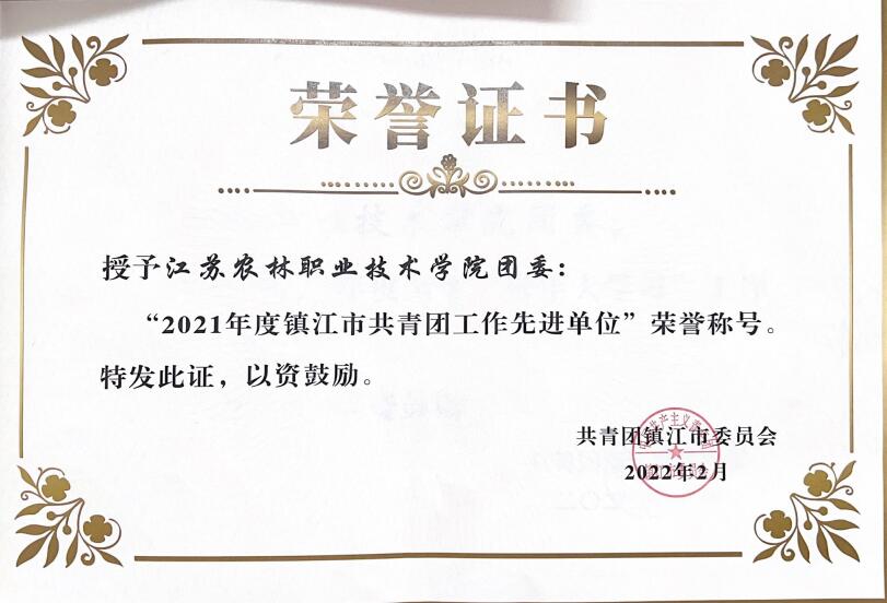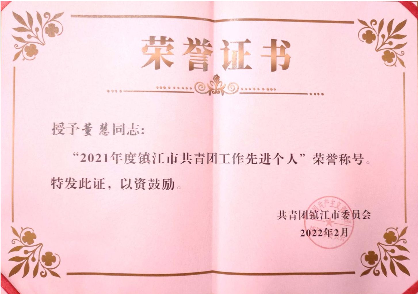 近日,共青团镇江市第十七届六次全委会议在镇江召开,会上对2021年度镇江市共青团工作先进单位和先进个人进行了表彰。学院团委荣获“2021年度镇江市共青团工作先进单位”,董慧老师获“2021年度镇江市共青团工作先进个人”。