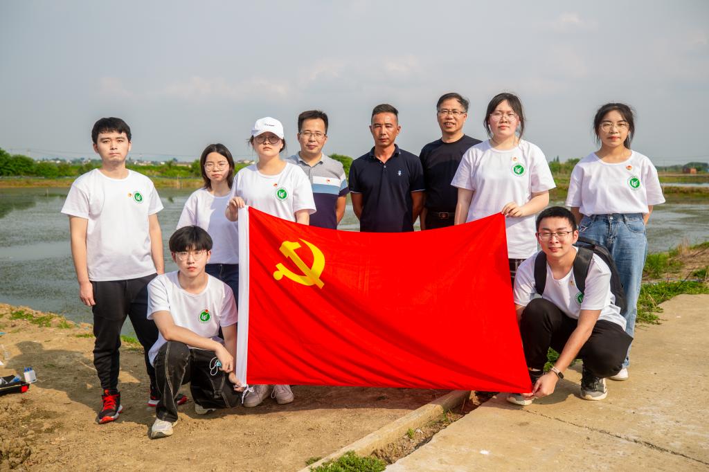 开展实地调研,宣传生态养殖。实践团成员们在镇江市劳模洪玉定研究员的协助下,分别走进句容市后白镇、郭庄镇、天王镇和下蜀镇等主要水产养殖区,调研了青虾、小龙虾、草鱼、甲鱼、大鲵和鲟鱼等品种的养殖现状,开展水质检测、病害分析等服务,发放了小龙虾、河蟹等养殖技术手册,宣讲了稻虾共作、鱼菜共生等生态养殖模式。