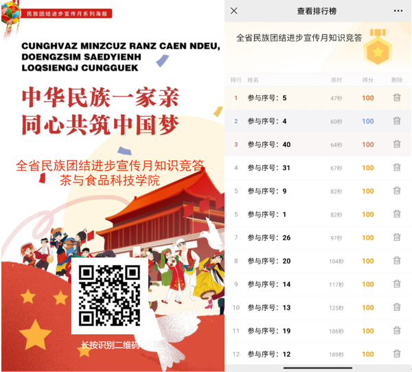 茶与食品科技学院组织教师认真学习相关知识,引导教师积极参与竞答,通过此种形式的活动,不断厚植铸牢中华民族共同体意识的吸引力和凝聚力。