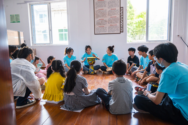 实践团深入文成县朱阳小学,将“五彩课堂”搬进山区,以红、黄、蓝、绿、紫五种颜色,代表着思想引领、心理关怀、学业指导、文体培训、劳动教育等五个方面的教育,全方位做好华侨留守儿童的帮扶活动,使他们思想上端正,学习上进步,心理上健康,成为更加自立、自信、自强、爱国的人。实践团理论宣讲小分队深入社区文化礼堂开展理论宣讲活动,用青言青语讲述中国故事。