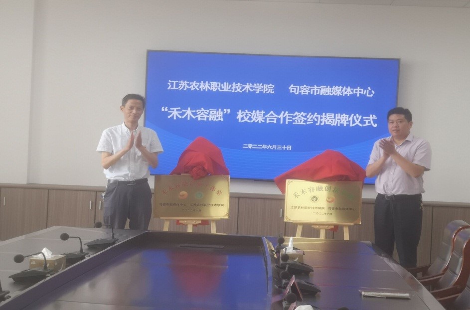 6月30日下午,经济与人文学院与句容市融媒体中心举行“禾木容融”校媒合作签约及揭牌仪式。