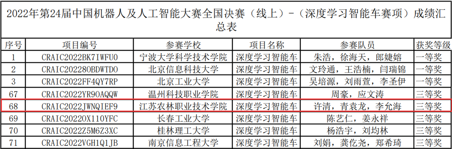 近日,在第二十四届中国机器人及人工智能大赛全国决赛中,信息工程学院共有3支队伍进入了决赛并获奖,其中小型机器人应用场景的两支队伍分别获得二等奖和优秀奖,深度学习机器人赛项获得三等奖。