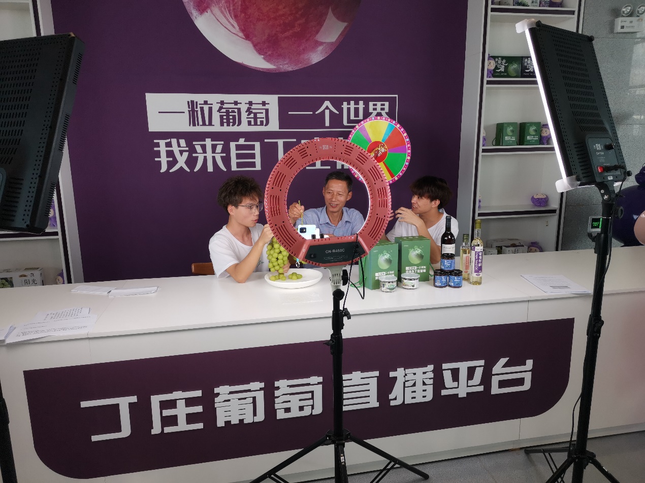 自8月份起,经济与人文学院教工第二党支部联合学生党支部通过“亚夫科技服务”团队,主动对接句容市茅山镇丁庄葡萄合作联社、丁庄葡萄分拣中心、甜静家庭农场等经营主体,开展“丁庄葡萄产业新零售技术服务模式示范与推广”活动,共建“葡萄新零售技术培训基地”,运用新零售技术帮助农户搭建线上网店,进行农产品短视频及直播推介,拓宽新零售销售渠道,打造农产品零售“新业态”。师生团队通过拼多多、淘宝、微信小程序等多元化平台,每天以巨峰、夏黑、阳光玫瑰等主打品种完成1-2场在线直播销售活动,目前已累计直播100余场,帮助农户增收100余万元。