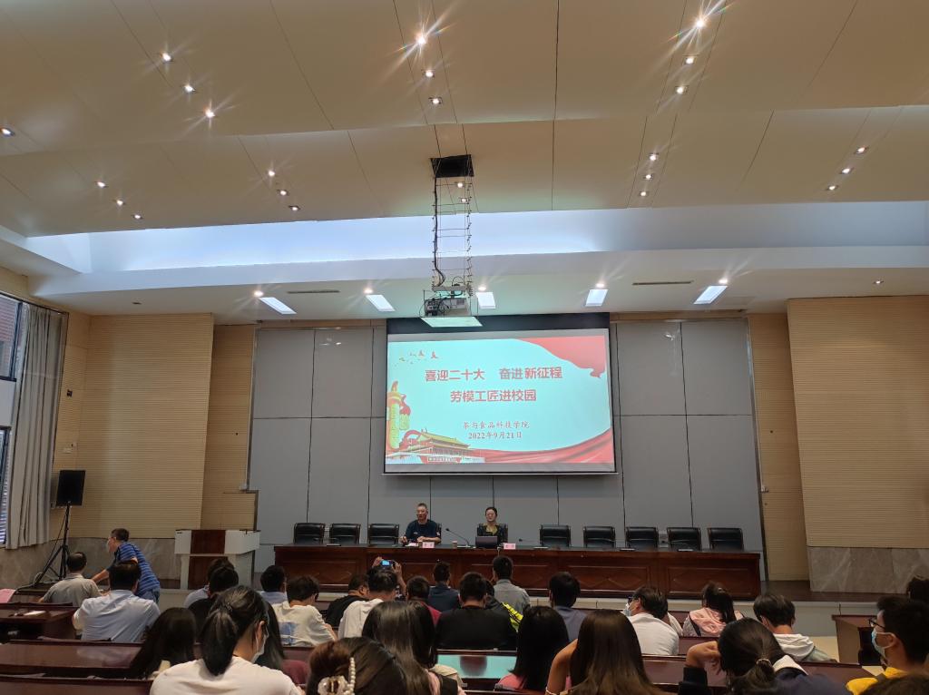 “喜迎二十大,奋进新征程”,9月21日下午,茶与食品科技学院党总支在研发楼报告厅开展“劳模工匠进校园”活动,特邀“全国先进工作者”“全国十大师德楷模”“全国优秀教师”金燕教授做了一场题为“永葆初心奋斗不息”的专题讲座。