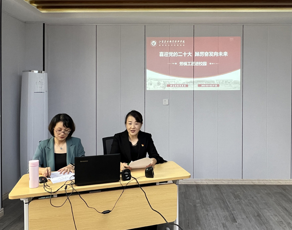 喜迎党的二十大,踔厉奋发向未来。9月27日下午,茅山校区党总支在“一站式”学生社区“三育文苑”的初心党团室开展了“劳模工匠进校园”活动,特邀江苏省师德标兵、江苏省优秀教育工作者、镇江市劳动模范王静老师做专题宣讲。
