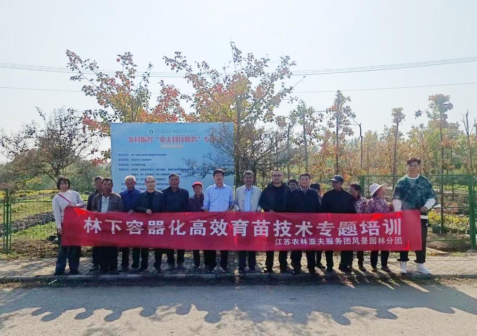 近日,学院“亚夫科技服务团队”园林分团巫建新、宗树斌两位老师带领团队成员赴科技服务对接示范基地天王镇唐陵村开展技术培训,现场指导示范户开展林下高效育苗生产。