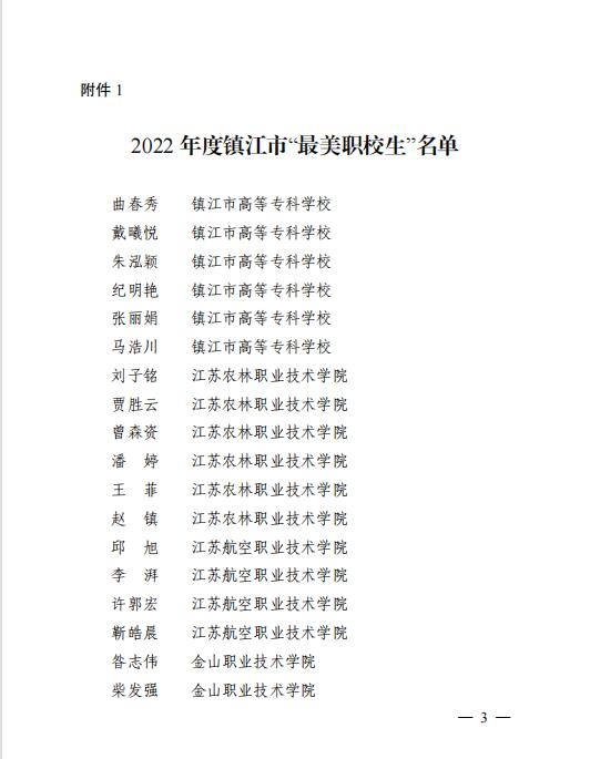 近日,由共青团镇江市委员会、镇江市教育局主办的2022年度镇江市“最美职校生”寻访活动结果公布,由学院团委推荐的信息工程学院刘子铭、机电工程学院贾胜云、风景园林学院曾森资、农学园艺学院潘婷、茶与食品科技学院王菲、农学园艺学院赵镇等6位同学,荣获2022年度镇江市“最美职校生”称号。
