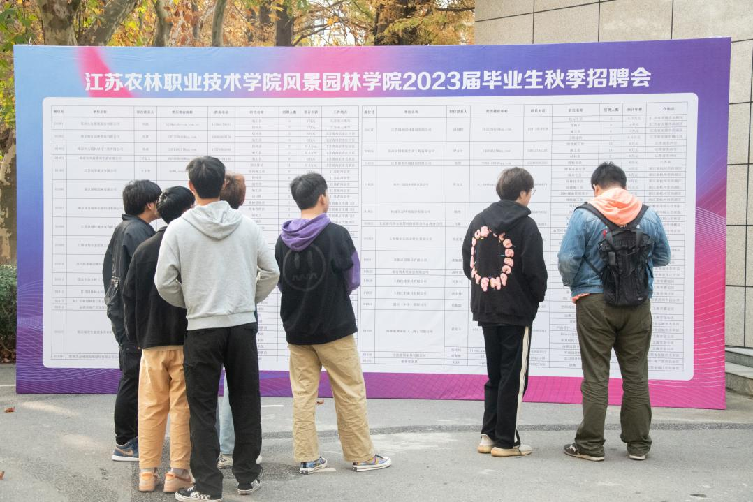 本次双选会共邀请了包括美尚生态景观股份有限公司、南京锦江园林景观有限公司、江苏国林林业科技有限公司、林海生态环境股份有限公司、亚振家居股份有限公司等40家省内外知名企业参会,提供有效就业岗位近千个,涉及园林技术、林业技术、园林工程技术、工程造价、家具设计与制造、木材加工技术、环境艺术设计及高尔夫运动与场地管理8个专业。