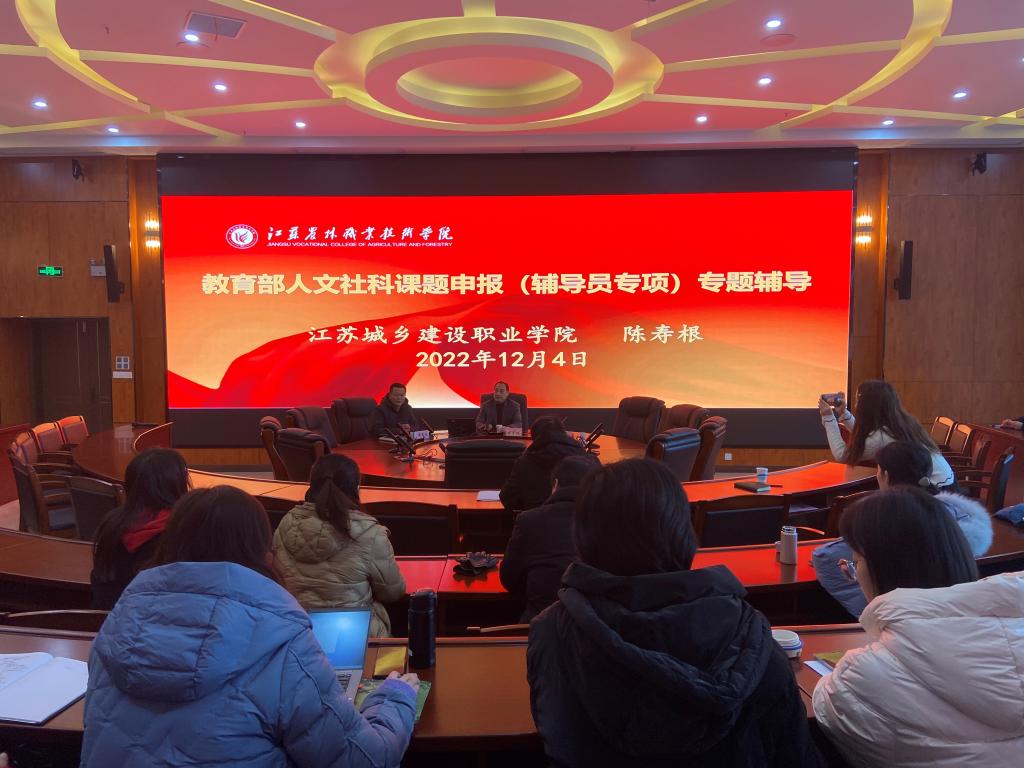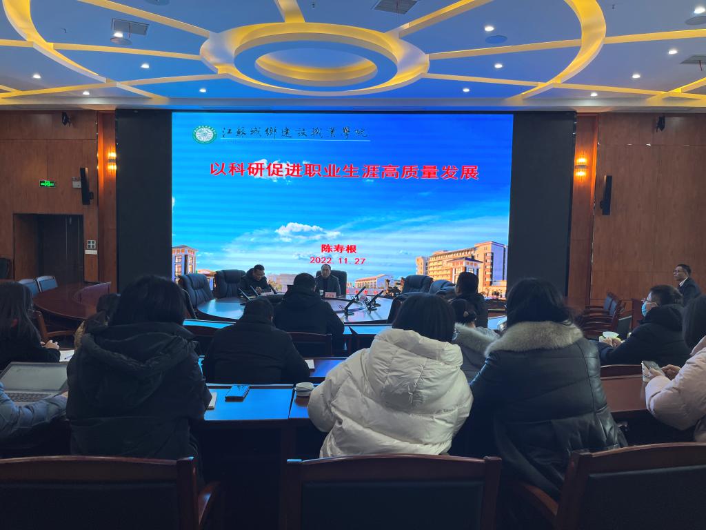 江苏城乡建设职业学院党委委员、副院长陈寿根从选好题、多积累、把握时机呈现三个方面为辅导员们分析了为什么要做科研以及怎么样做科研,鼓励辅导员们要把科研应用到工作中去,提升工作品质,实现课题研究的本真价值,并在实践中丰富成果、提升本领。江苏城乡建设职业学院团委副书记周文斌从自身破茧到破冰再到破局的历程出发,分享了自己如何申报课题、如何选取研究方向以及遇到科研瓶颈时如何调整方向的经验。