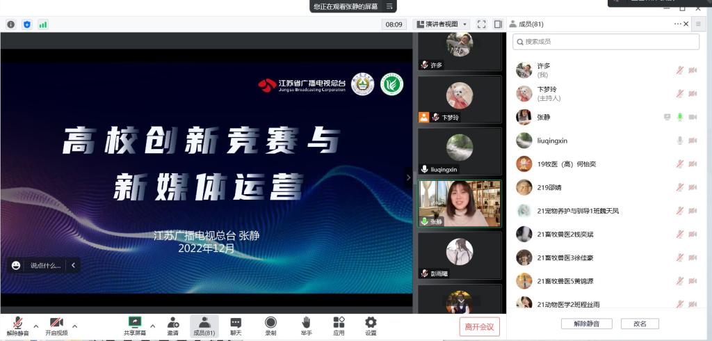 12月15日晚,畜牧兽医学院联合榆林职业技术学院开展线上东西部对口帮扶培训活动。活动邀请了第七届“互联网+”创新创业大赛银奖获得者张静对历届大赛进行解读,分别从选题、项目计划书、PPT等方面进行细致讲解。另外,畜牧兽医学院与榆林职业技术学院科技人员针对红枣羊的养殖技术进行了探讨和交流。